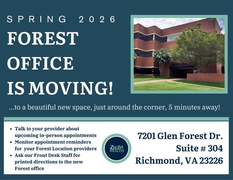 ZoeRVA Health offers medical and counseling services that allow individuals to meet their physical and mental health goals through clinical care that is respectful, collaborative, and emphasizes the importance of lifestyle changes.